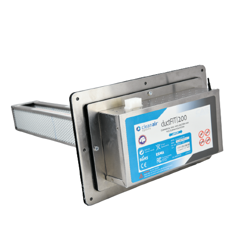 El sistema ductFIT® es el único y patentado sistema de purificación de aire y desinfección de superficie 24 horas 7 días a la semana mediante moléculas de H2O2 en la ventilación. Está probado científicamente que ductFIT® es 100% seguro para humanos y animales al no generar ningún tipo de sustancia ni químicos nocivos para la salud.